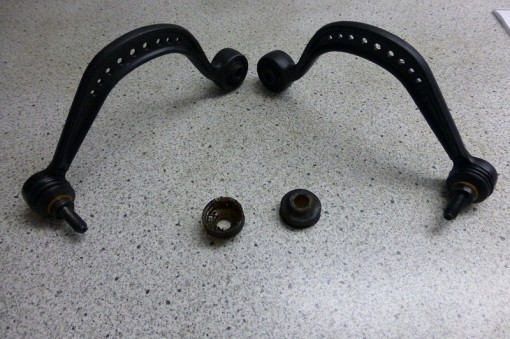 Die Koppelstangen stellen die Verbindung zwischen den beiden Federbeinen und dem Querlenker her. Die Gummimanschetten werden mit der Zeit brüchig, die Lager schlagen aus.